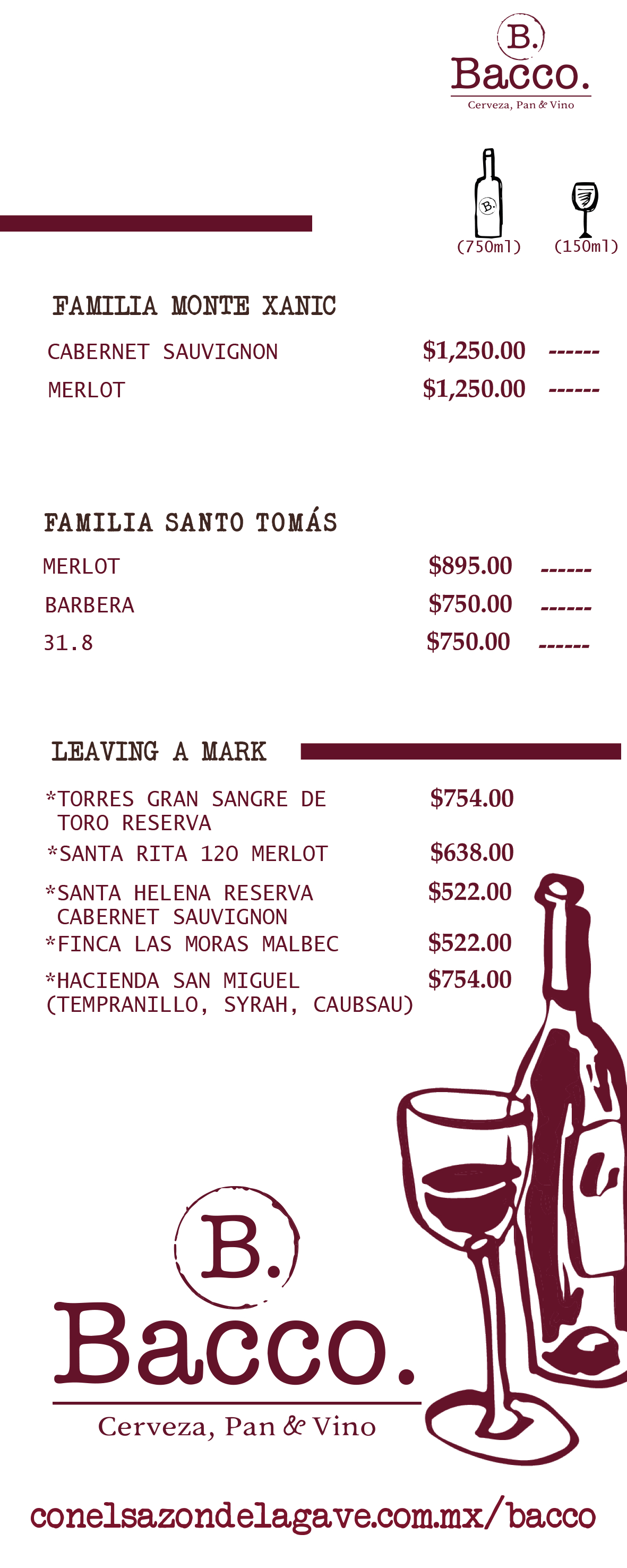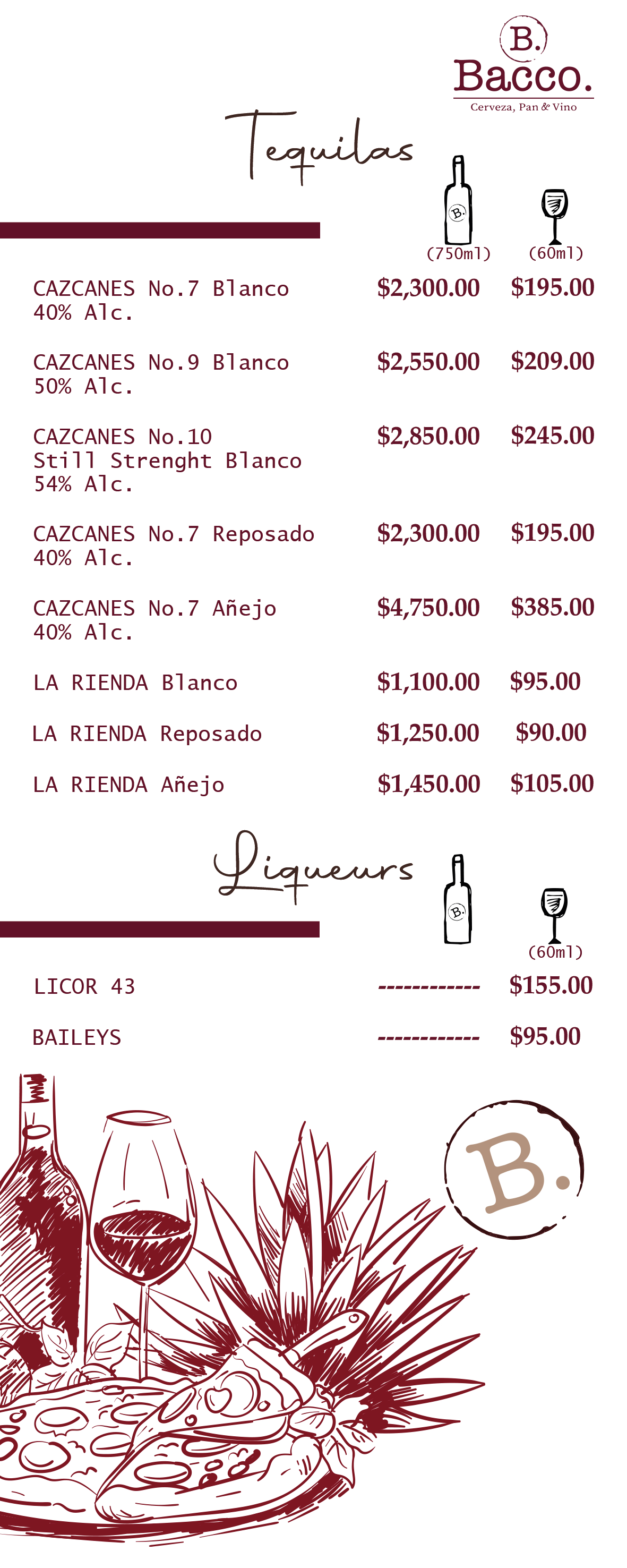 Menu Bacco English